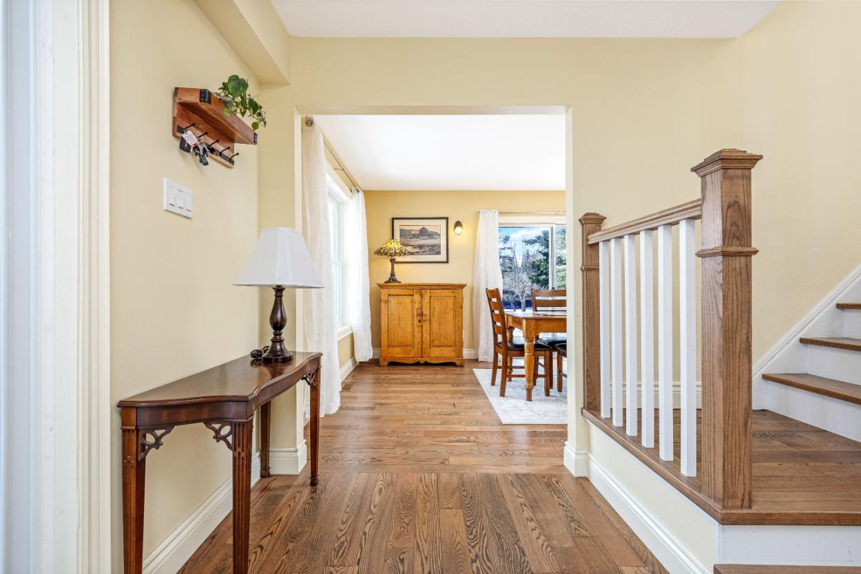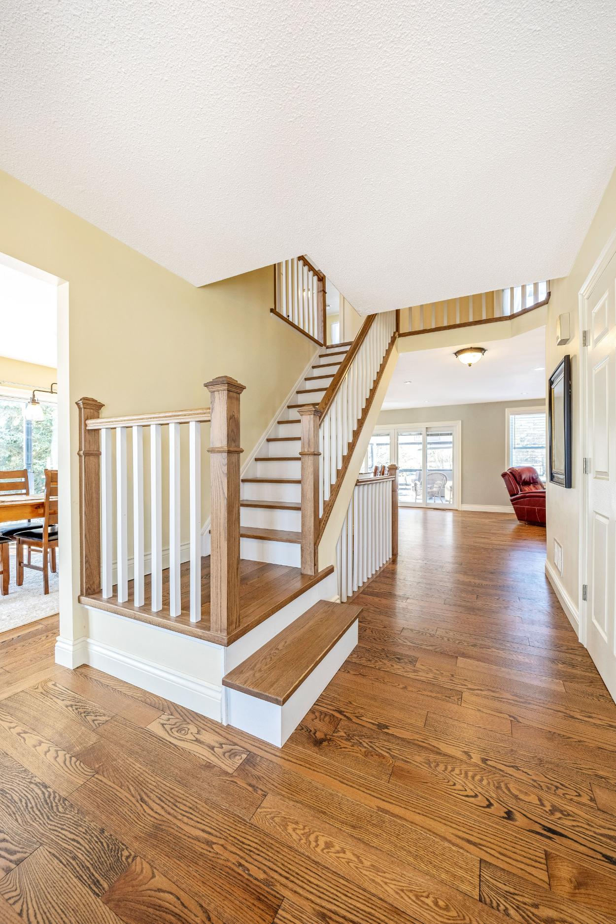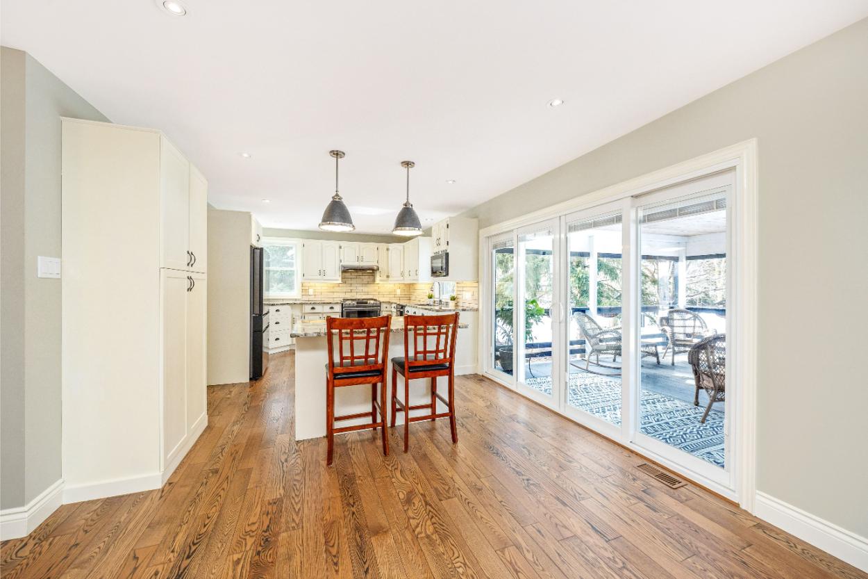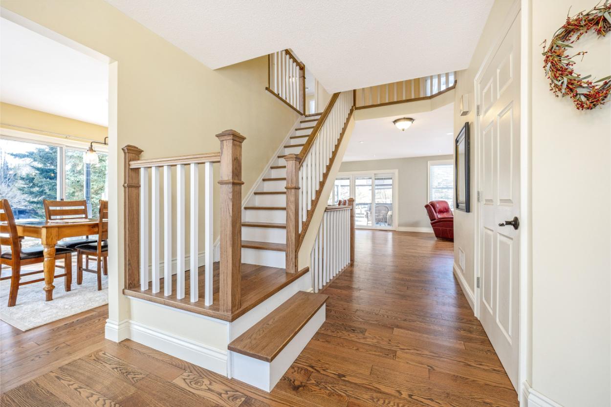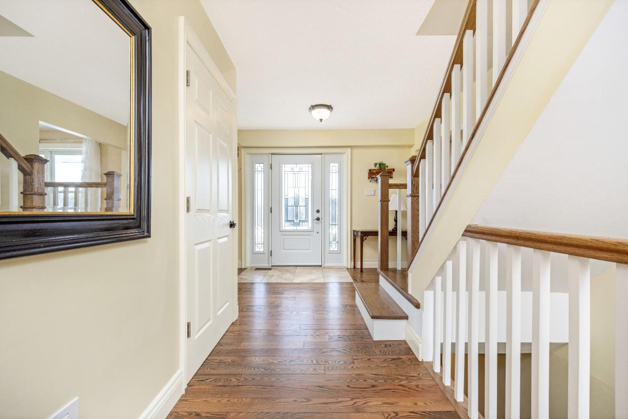Inside, this four bedroom home has been renovated from top to bottom with thousands spent on thoughtful updates. The classic centre hall layout welcomes you with fresh paint, brand new wide plank hardwood flooring throughout and a stunning new staircase that creates a warm first impression.