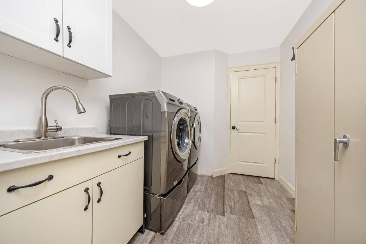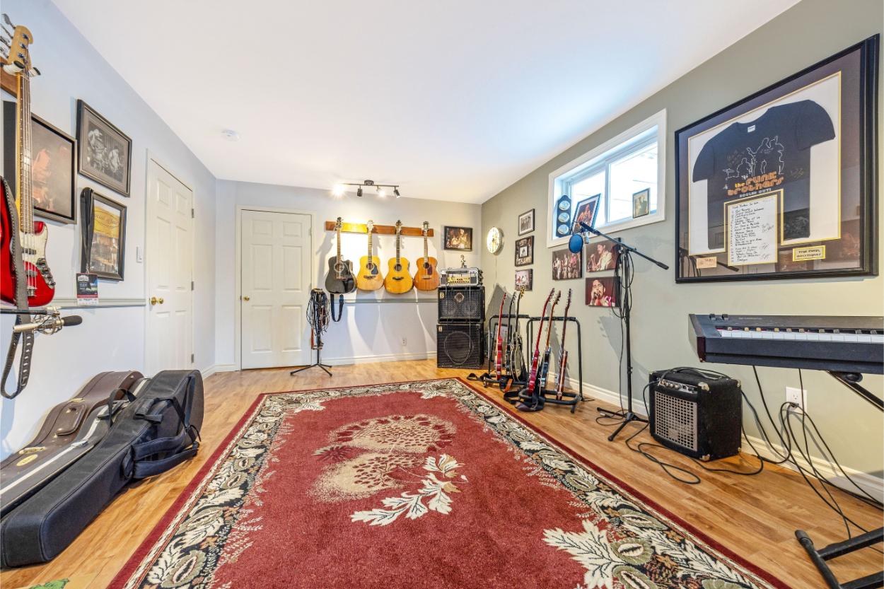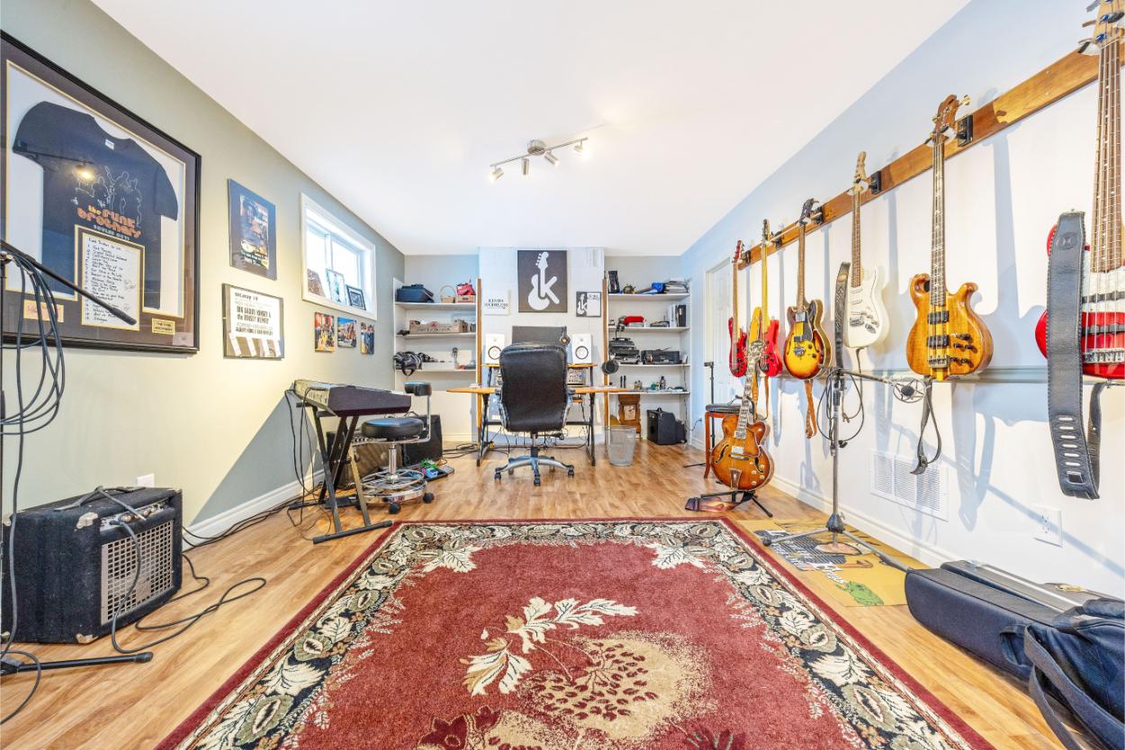 The finished lower level adds even more flexible living space and includes a large recreation room along with separate music and sewing rooms. Above grade windows allow natural light to fill the space, making it ideal for hobbies, entertaining or additional family living areas.