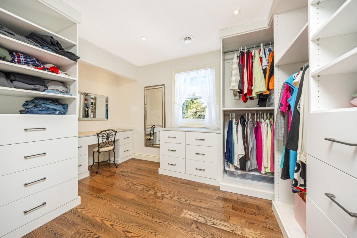 Upstairs, the spacious primary bedroom offers a walk in closet, built in storage and a makeup vanity area. The newly renovated three piece ensuite features a glass walk in shower and modern finishes. Three additional bedrooms, one currently used as a den, along with a full four piece family bathroom complete the upper level.