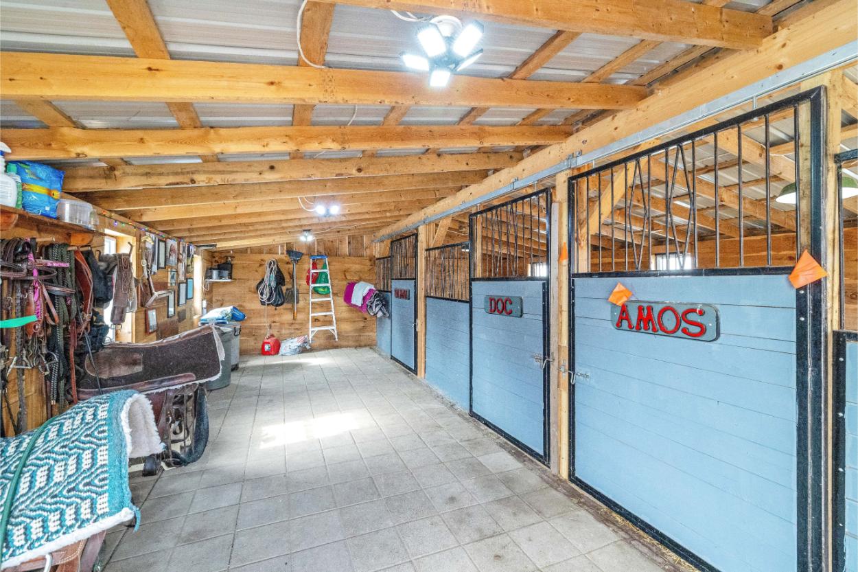 The property features more than 10 acres of fenced paddocks, providing ample space for horses or other animals. A versatile three stall barn with tack room offers practical functionality, while direct access to the Upper Grand Trailway allows you to enjoy riding, walking or exploring nature right from your own property.