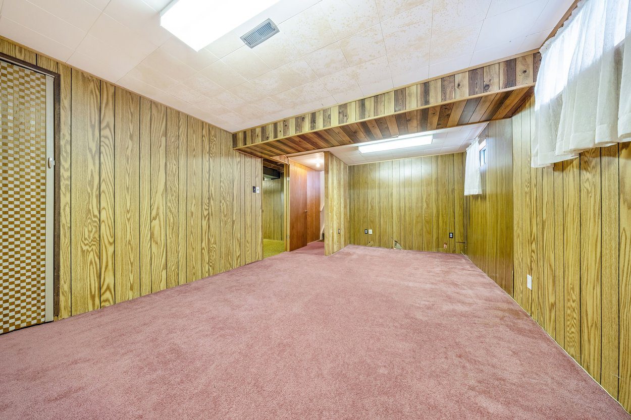 The basement provides additional living and storage space with a rec room featuring wood paneling walls, two above grade windows, a closet and a laundry area with access to an oversized crawl space.