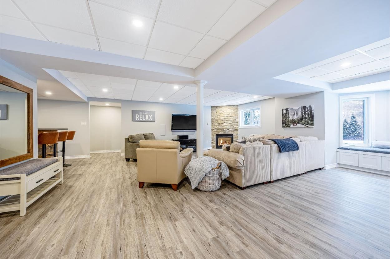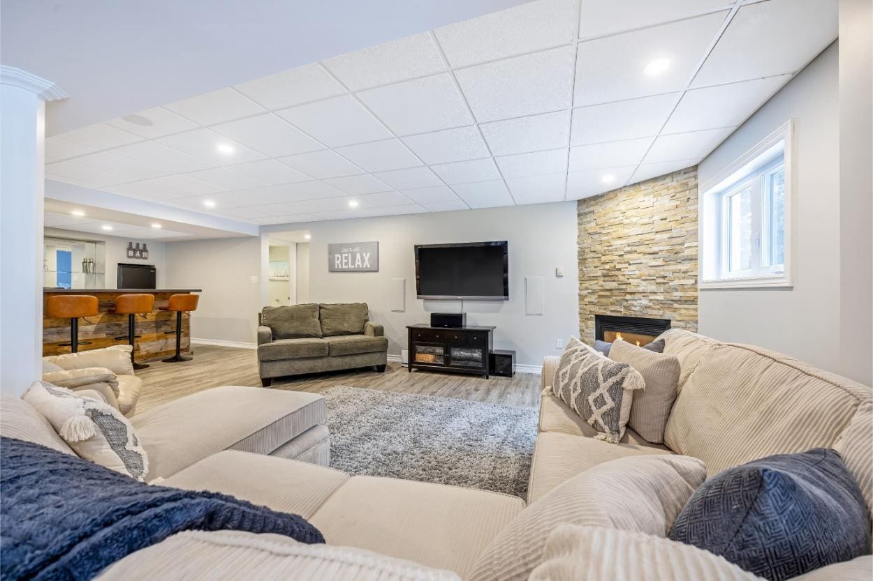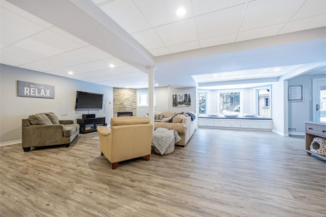 The finished lower level walkout is designed for entertaining and flexible living. This level includes a movie room, open concept office area, and a spacious recreation room with a wet bar and gas fireplace. Two additional bedrooms and a four piece bathroom provide excellent space for teens, guests, or extended family.