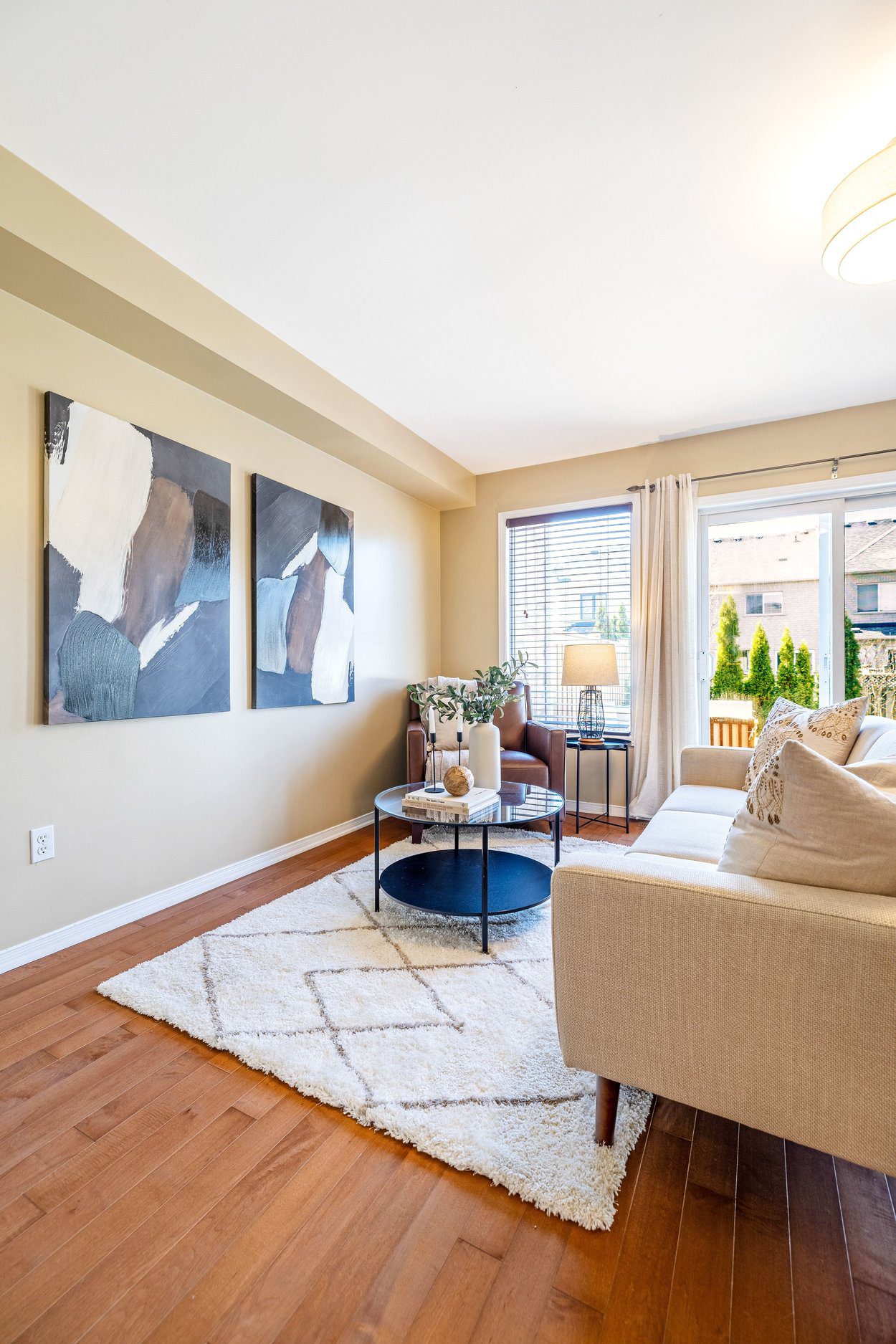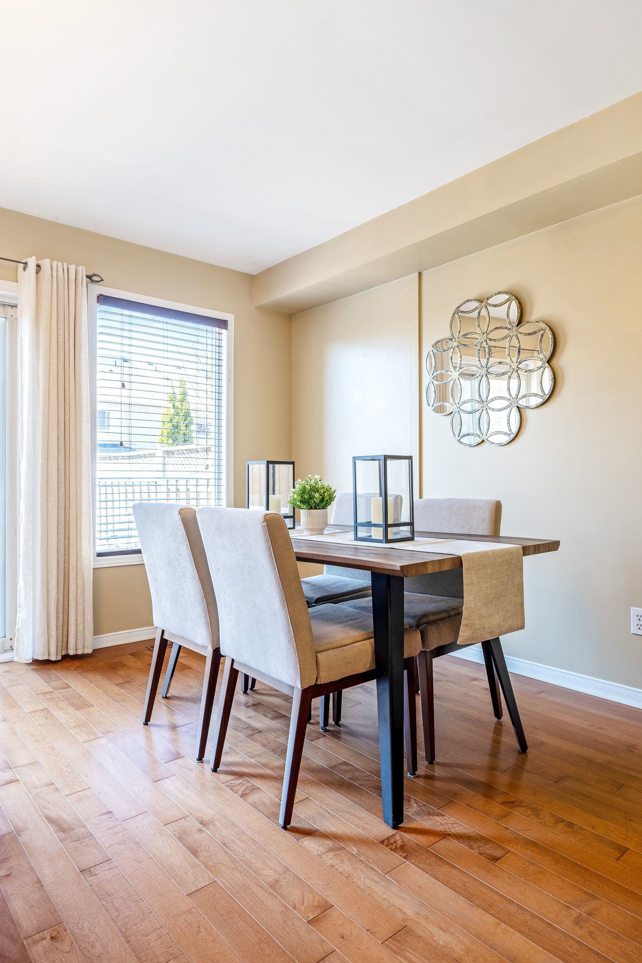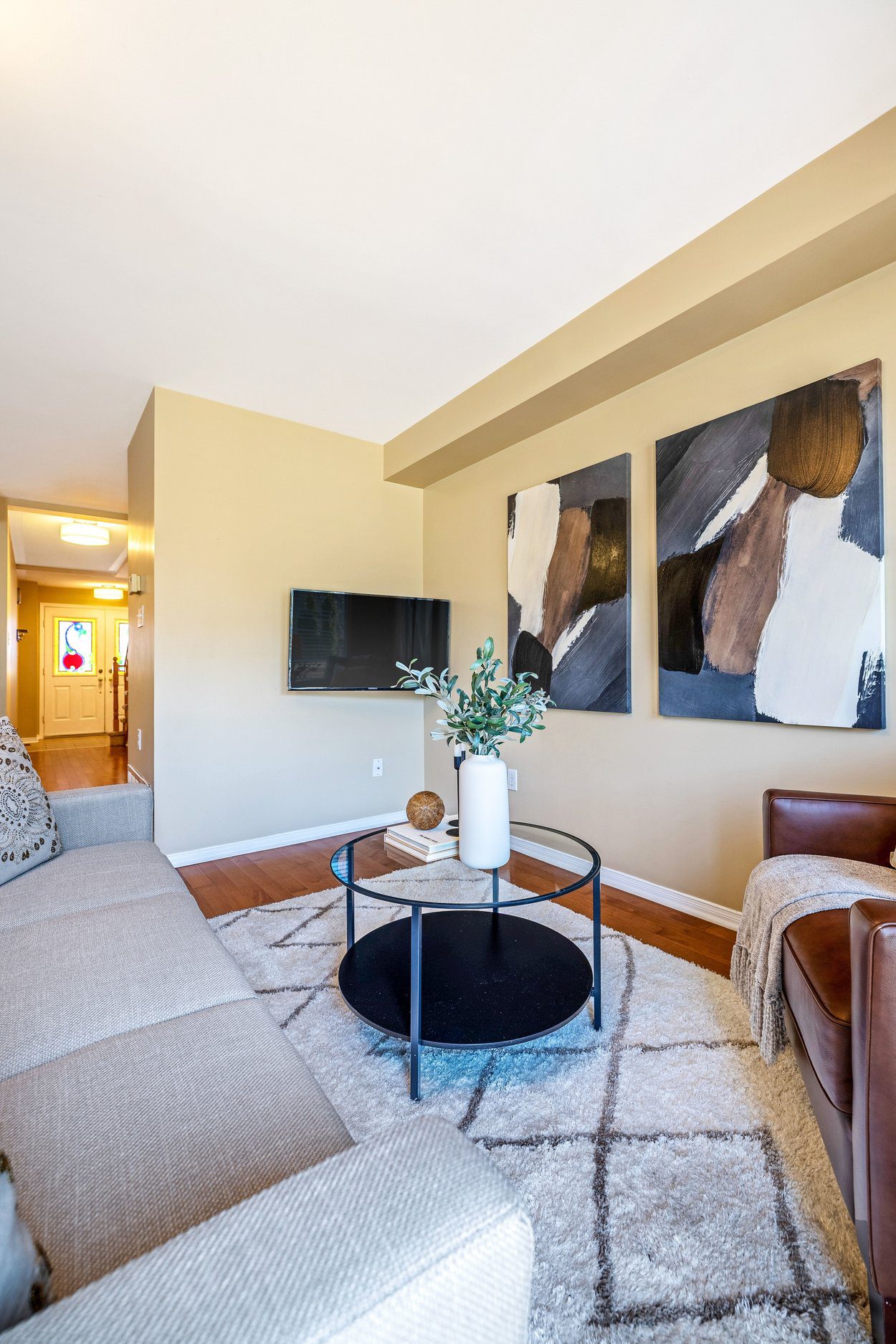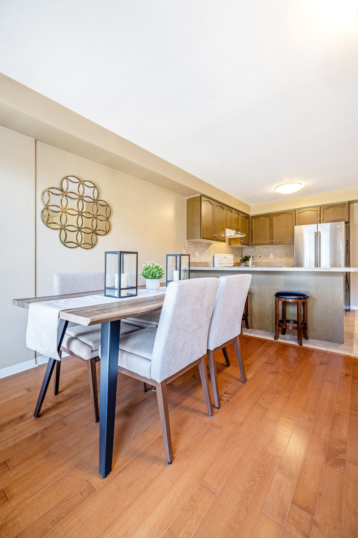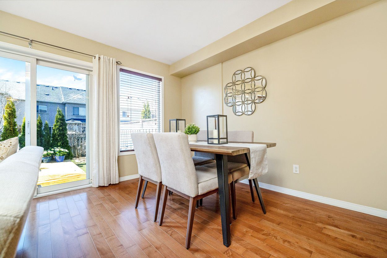 Step inside to a bright and welcoming main level designed for both everyday living and easy entertaining. The space is anchored by solid ¾ inch hardwood flooring that flows seamlessly through the hallway, living room, and breakfast area, creating a cohesive and inviting feel. Natural light fills the home through a large rear window and double sliding glass door walkout, connecting the indoor space effortlessly to the backyard.