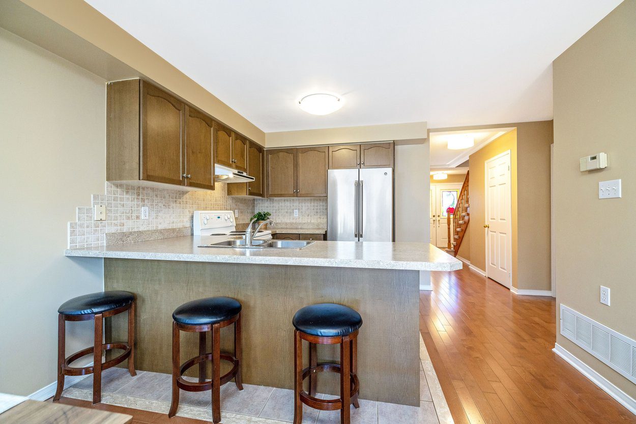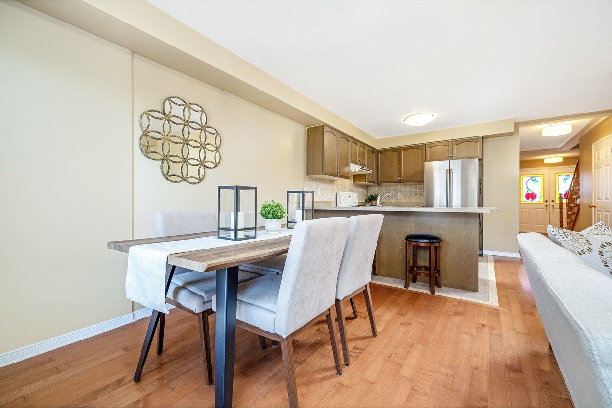 Welcome to a beautifully maintained freehold townhouse that offers a perfect balance of comfort, functionality, and thoughtful updates throughout. From the moment you arrive, the landscaped front yard, stone walkway, and covered front porch create a warm and inviting first impression. The private driveway offers parking for two vehicles, while the attached garage provides added convenience with overhead and hanging storage, ideal for seasonal items and everyday organization.