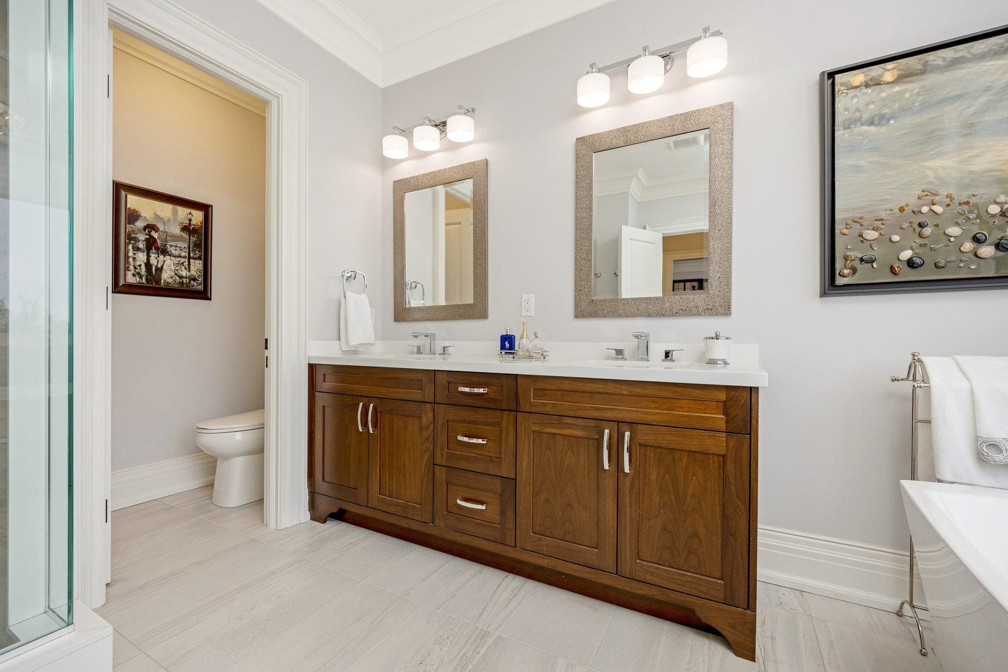 Upstairs, four generously sized bedrooms each feature walk-in closets and their own private ensuite bathrooms, providing comfort and convenience for family members and guests alike. The primary suite offers a peaceful retreat with a spacious layout and well-appointed ensuite.