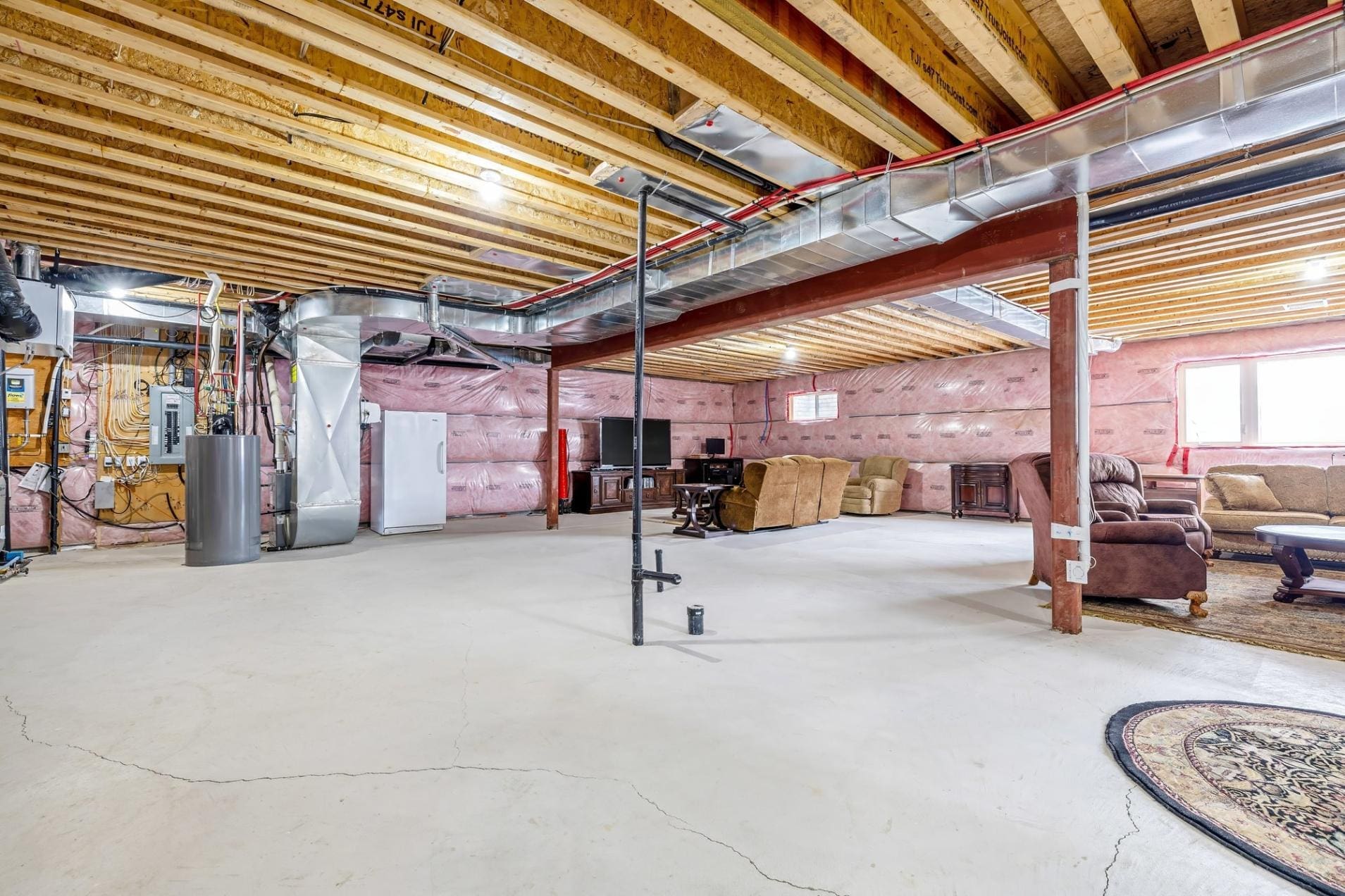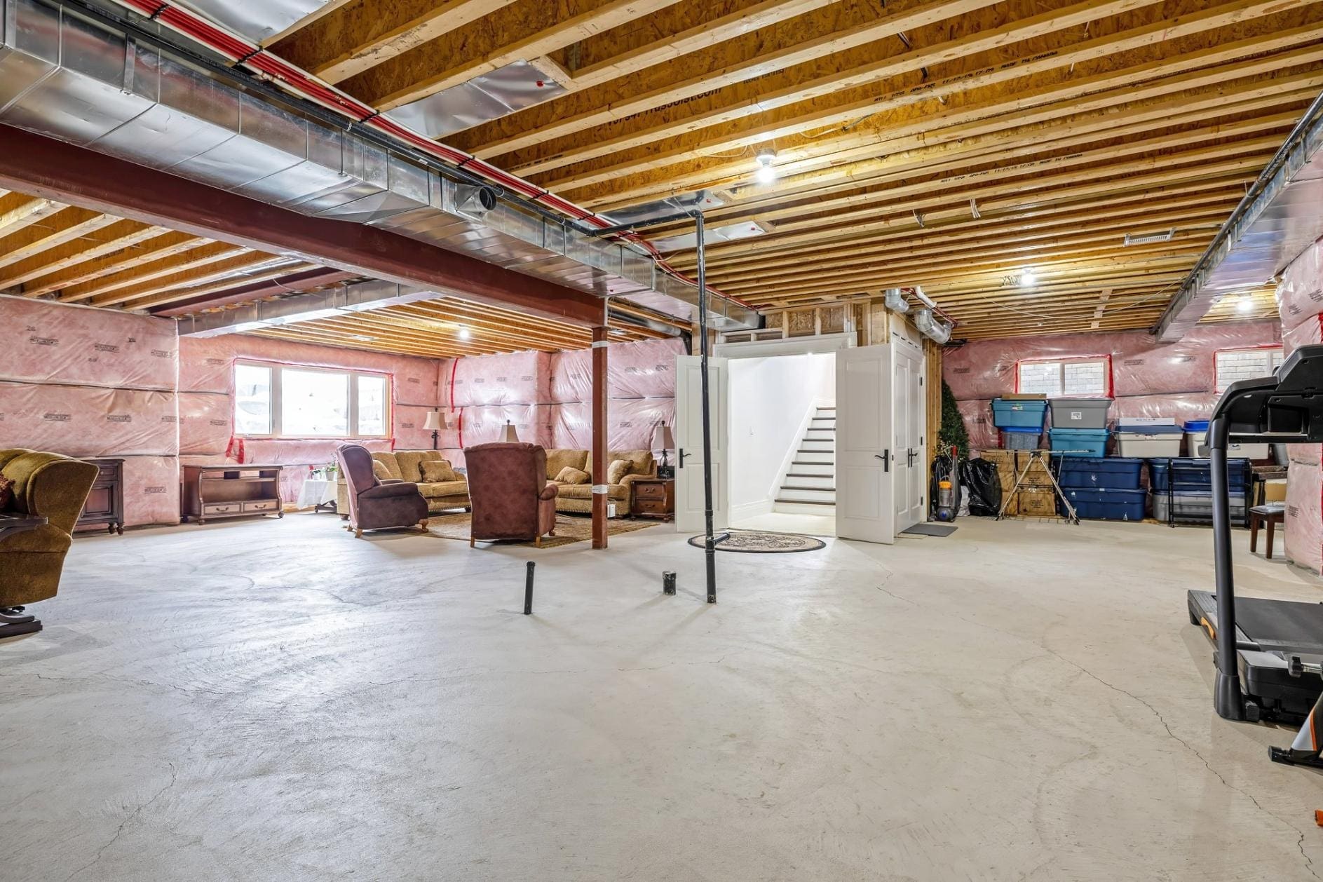 The unfinished basement presents a blank canvas, complete with a roughed-in 3-piece bathroom, allowing you to design additional living space to suit your needs, whether a recreation area, home gym, or in-law suite.
