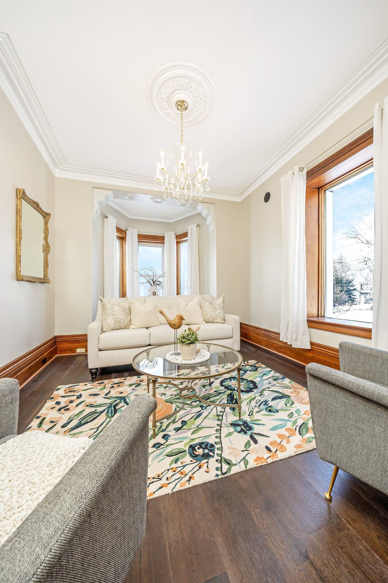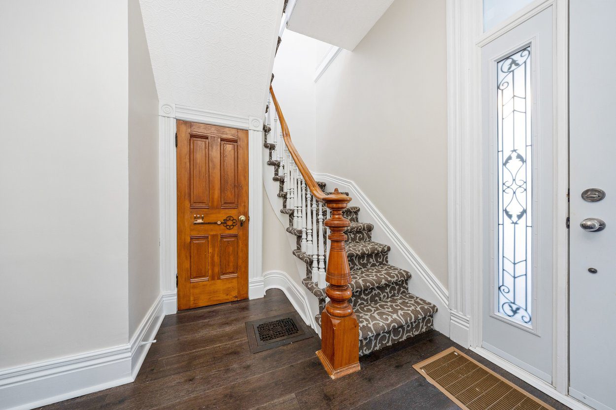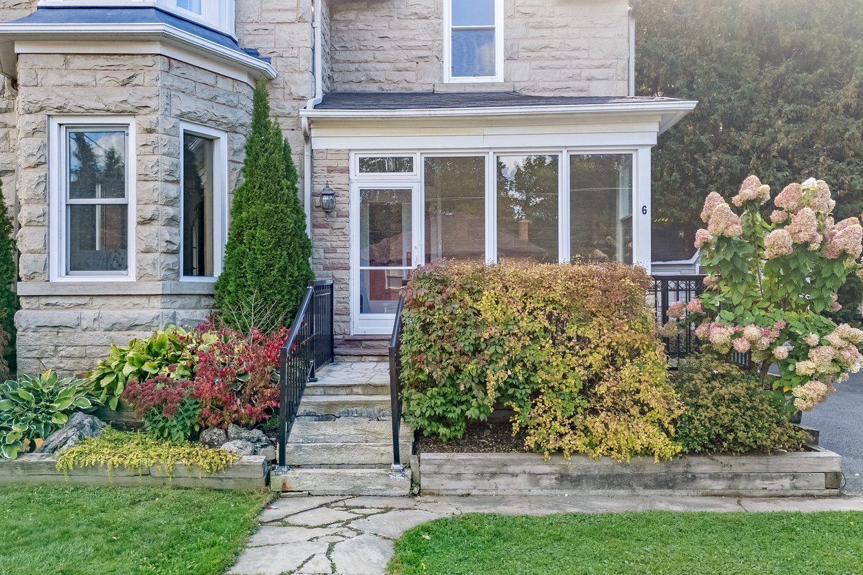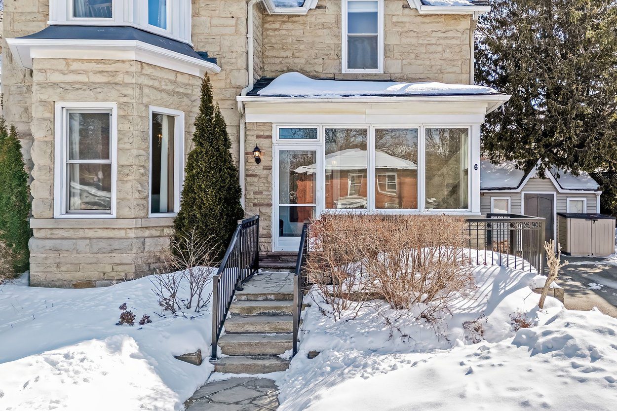 Welcome to 6 Queen Street, a one of a kind Victorian inspired stone home nestled in the heart of Georgetown. This special home blends old world charm with the comforts families love today. From the moment you step into the bright enclosed front porch, wrapped in glass and finished with hardwood floors, you feel the character and history of this property. The porch leads into a warm front foyer with hardwood floors, high baseboards, deep set windows and soaring 10 foot ceilings that set the tone for the main level.