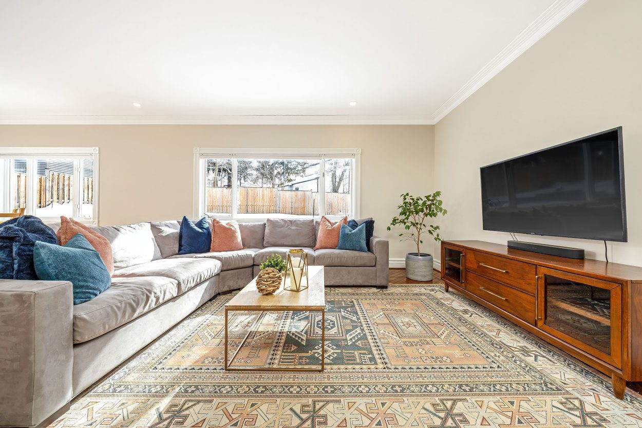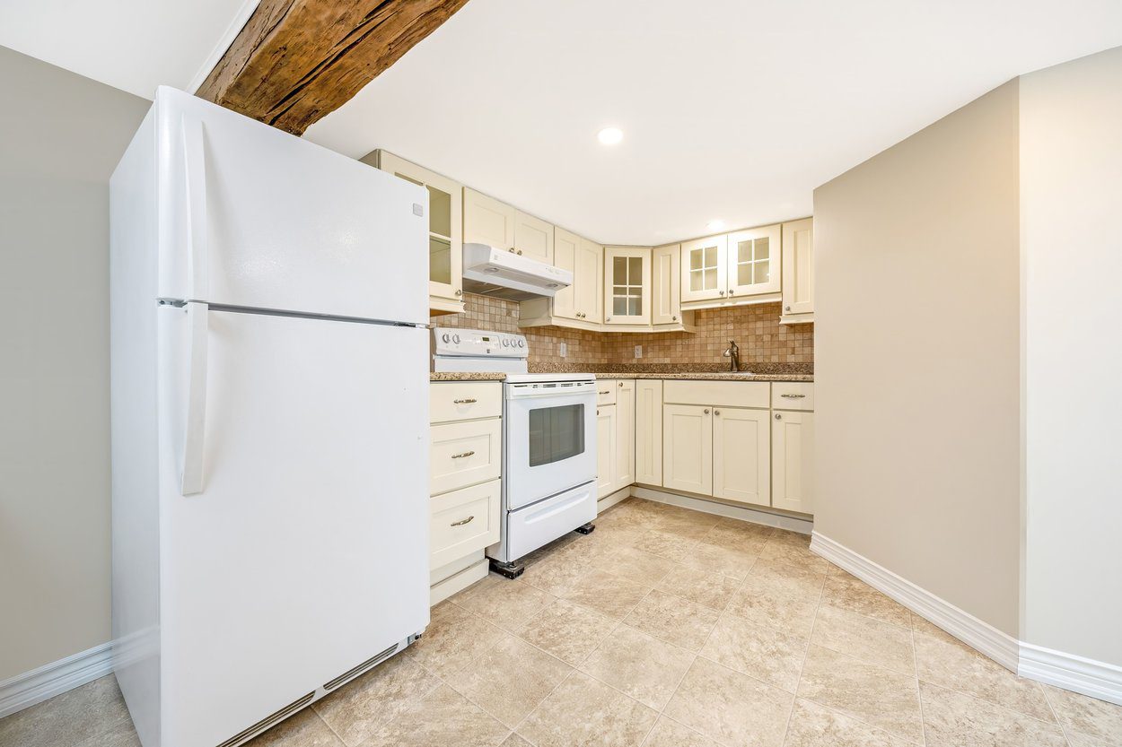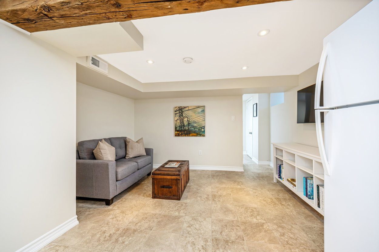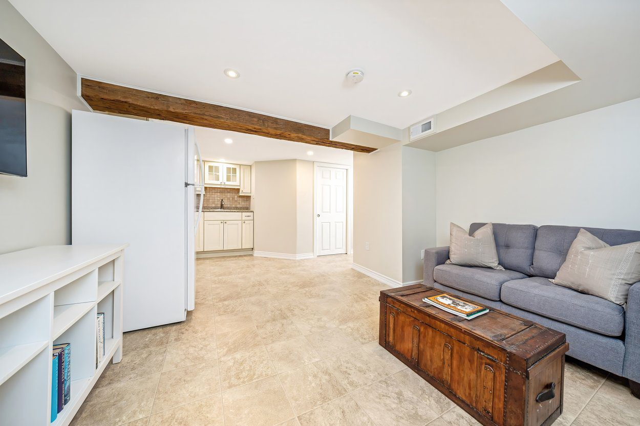 The lower level is perfect for extra family space or overnight guests. It includes a rec room with ceramic tile, a laundry area with built in cabinets and a folding counter, a brand new three piece bathroom with a glass shower and rainhead, a second kitchen with Kenmore appliances, and a den with a closet.