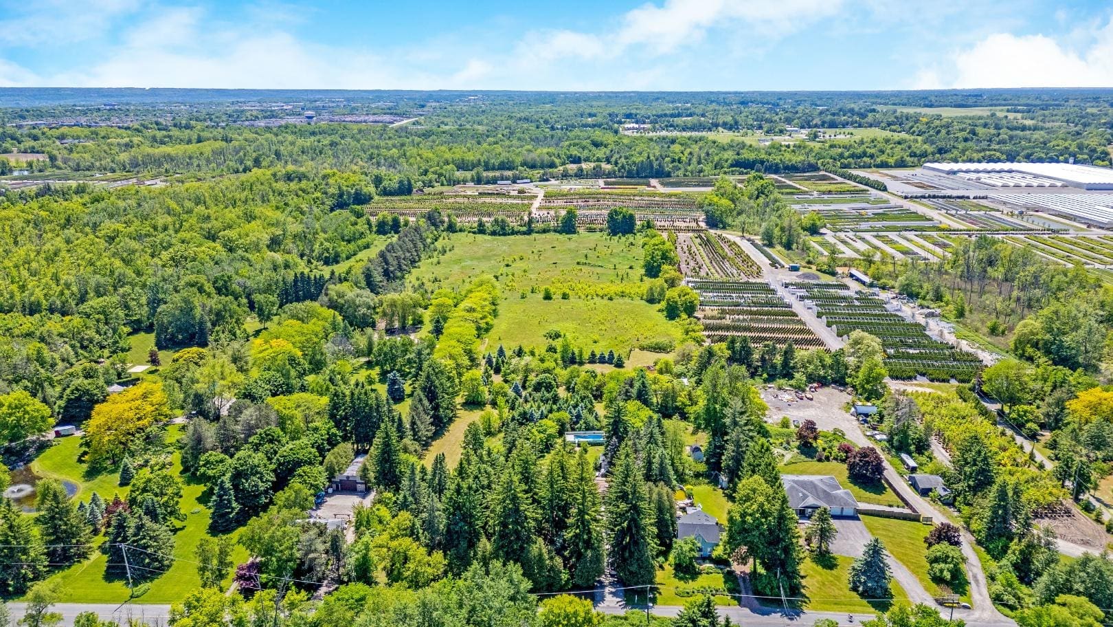 Welcome to a sanctuary spanning over 18 lush acres nestled across from the enchanting Medad Valley, a protected Niagara Escarpment Natural Area. This custom-built home offers a blend of tranquility and potential, eagerly awaiting your personal touch to breathe new life into its timeless halls. The sprawling property, an ideal canvas for those with dreams of a charming hobby farm or a self-sustaining homestead, is surrounded by productive greenhouses and nursery farmland.