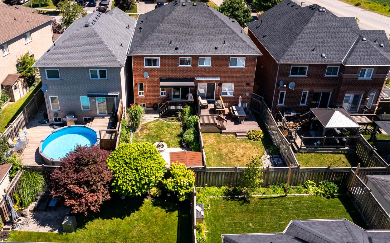 Step outside to the private backyard deck complete with a motorized awning, perfect for sunny afternoons, summer BBQs or relaxing evenings with family and friends. The garden is thoughtfully designed to be easy to maintain while still providing a lovely outdoor space to enjoy.